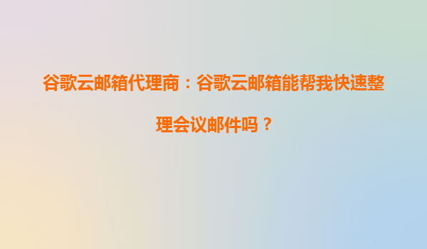 2025-10-15谷歌云郵箱代理商:谷歌云郵箱能幫我快速整理會(huì)議郵件嗎? 谷歌云郵箱的高效會(huì)議郵件管理能力 谷歌云郵箱(GmailforBusiness)憑借人工智能技術(shù)和強(qiáng)大的云端功能,為用戶提供了高效的會(huì)議郵...