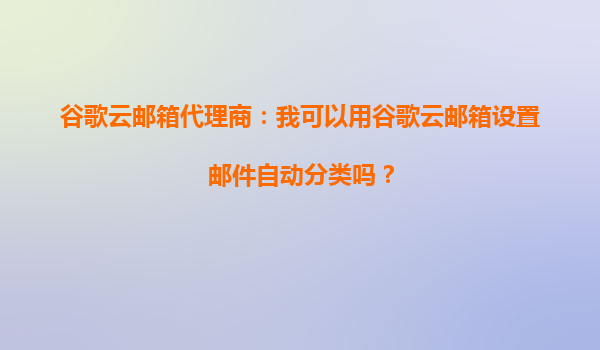 2025-10-15谷歌云郵箱代理商:我可以用谷歌云郵箱設(shè)置郵件自動(dòng)分類嗎? 一、谷歌云郵箱的自動(dòng)分類功能 谷歌云郵箱(Gmail)作為全球領(lǐng)先的電子郵件服務(wù)之一,提供了強(qiáng)大的郵件管理功能,其中自...