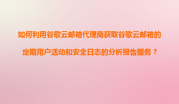 2025-11-09如何利用谷歌云郵箱代理商獲取定期用戶(hù)活動(dòng)和安全日志分析報(bào)告 一、谷歌云郵箱的核心價(jià)值 谷歌云郵箱(GoogleWorkspace)是企業(yè)級(jí)郵件服務(wù)解決方案,提供: 99.9%SLA可靠性保障 TB級(jí)云存儲(chǔ)空間 AI驅(qū)動(dòng)的垃...