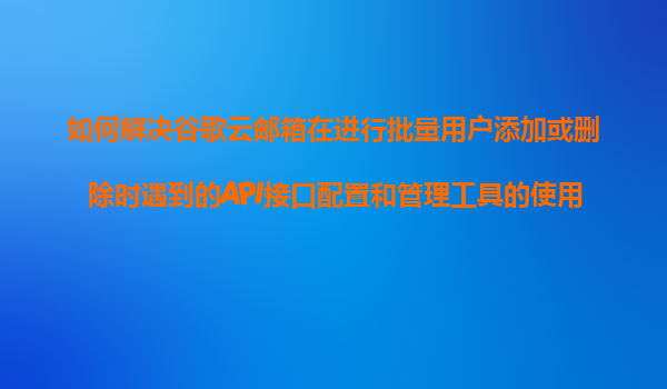 2025-11-09如何解決谷歌云郵箱批量用戶(hù)操作的API接口配置與管理工具使用難題 一、谷歌云郵箱批量操作的常見(jiàn)痛點(diǎn)與需求 在企業(yè)IT管理中,批量添加或刪除用戶(hù)是高頻需求。谷歌云郵箱(GoogleWorkspace)...