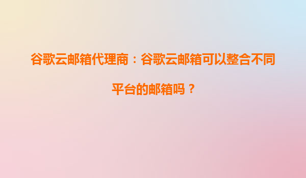 2025-10-14谷歌云郵箱代理商:谷歌云郵箱可以整合不同平臺的郵箱嗎? 什么是谷歌云郵箱? 谷歌云郵箱(GoogleWorkspace,原名GSuite)是谷歌為企業(yè)、教育機構及個人用戶提供的專業(yè)電子郵件服務。它基于Gmail的核心...