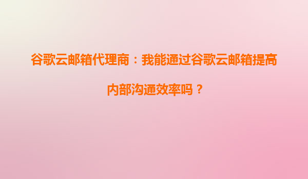 2025-10-14谷歌云郵箱代理商:我能通過谷歌云郵箱提高內部溝通效率嗎? 引言 在當今數(shù)字化工作環(huán)境中,高效的內部溝通是企業(yè)成功的關鍵因素之一。許多企業(yè)正在尋找可靠的工具來優(yōu)...