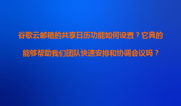2025-11-08谷歌云郵箱共享日歷功能簡(jiǎn)介 谷歌云郵箱(Gmail)的共享日歷功能是谷歌云生態(tài)中的重要協(xié)作工具,它允許團(tuán)隊(duì)成員之間輕松共享日程安排,提升溝通效率。無(wú)論是個(gè)人日程管理還是團(tuán)隊(duì)協(xié)作,共享日歷都能直觀(guān)呈現(xiàn)每個(gè)人的...