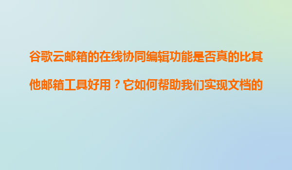2025-11-08谷歌云郵箱的在線(xiàn)協(xié)同編輯功能是否真的比其他郵箱工具好用?它如何幫助我們實(shí)現(xiàn)文檔的共享和Co-Editing? 引言 在當(dāng)今信息化快速發(fā)展的時(shí)代,郵箱工具的用途早已突破傳統(tǒng)的郵件收發(fā)功能,尤其是在線(xiàn)協(xié)同編輯和文檔...