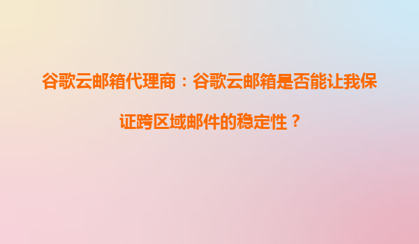 2025-10-06谷歌云郵箱代理商:谷歌云郵箱是否能讓我保證跨區(qū)域郵件的穩(wěn)定性? 在全球化商業(yè)環(huán)境中,跨區(qū)域郵件通信的穩(wěn)定性是企業(yè)高效運營的關鍵。谷歌云郵箱(GoogleWorkspace)作為全球領先的企業(yè)郵箱解決方案,憑借其...