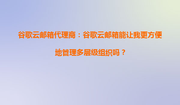 2025-10-06谷歌云郵箱代理商:谷歌云郵箱能讓我更方便地管理多層級組織嗎? 在當今數(shù)字化時代,企業(yè)組織架構日益復雜,多層級管理成為常態(tài)。如何高效管理這些層級,確保信息流通順暢、協(xié)作無縫進行,成為企業(yè)IT管理的重要...