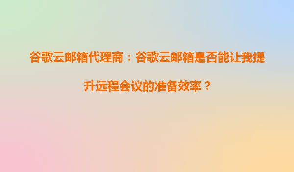 2025-10-06谷歌云郵箱代理商:谷歌云郵箱是否能讓我提升遠程會議的準備效率? 在當今數(shù)字化辦公環(huán)境中,遠程會議已成為企業(yè)日常運營的重要組成部分。如何高效地準備和管理遠程會議,成為許多企業(yè)和個人關注的焦點。谷歌云郵...