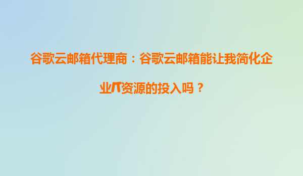 2025-10-06谷歌云郵箱代理商:谷歌云郵箱能讓我簡化企業(yè)IT資源的投入嗎? 引言 在數(shù)字化轉型的浪潮中,企業(yè)IT資源的優(yōu)化和管理成為關鍵挑戰(zhàn)之一。谷歌云郵箱(GoogleWorkspace)作為全球領先的企業(yè)級郵件和協(xié)作解決...