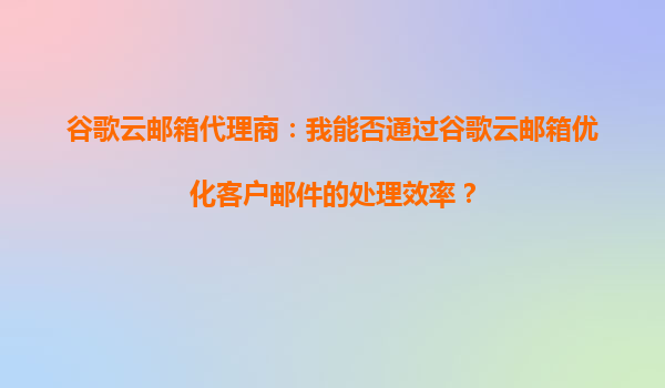 2025-10-04谷歌云郵箱代理商:如何通過谷歌云郵箱優(yōu)化客戶郵件處理效率 一、谷歌云郵箱的核心優(yōu)勢 谷歌云郵箱(GoogleWorkspace)作為企業(yè)級郵件解決方案,憑借其強大的云端架構(gòu)和智能化功能,成為提升客戶郵件處理效率...