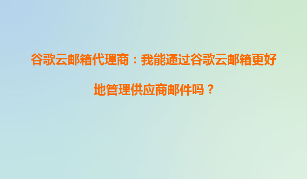 2025-09-29谷歌云郵箱代理商:通過谷歌云郵箱更好地管理供應(yīng)商郵件 一、為何選擇谷歌云郵箱管理供應(yīng)商郵件? 在商業(yè)合作中,與供應(yīng)商的高效溝通是供應(yīng)鏈管理的重要環(huán)節(jié)。傳統(tǒng)郵件系統(tǒng)往往面臨效率低下、分類混亂等問題,...