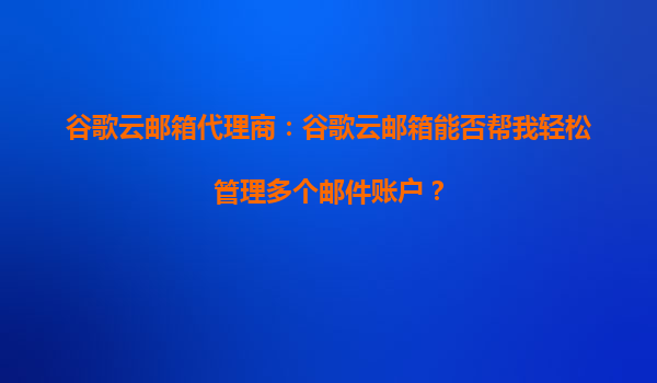4008-020-360 谷歌云郵箱代理商:谷歌云郵箱能否幫我輕松管理多個郵件賬戶? 在當(dāng)今快節(jié)奏的商業(yè)環(huán)境中,高效管理多個郵件賬戶已成為企業(yè)和個人的剛需。谷歌云郵箱(GoogleWorkspace,原GSuite)作為全球領(lǐng)先的企業(yè)級郵箱...