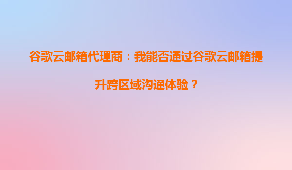 2025-09-29谷歌云郵箱代理商:我能否通過谷歌云郵箱提升跨區(qū)域溝通體驗? 引言 在全球化背景下,企業(yè)跨區(qū)域溝通的需求日益增長。無論是跨國公司還是中小型企業(yè),都需要一...