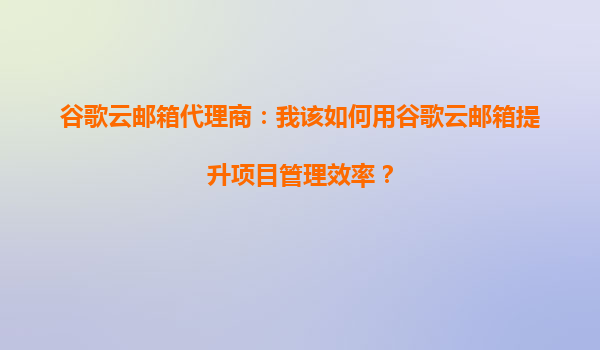 2025-09-29谷歌云郵箱代理商:我該如何用谷歌云郵箱提升項目管理效率? 一、引言:項目管理與高效協(xié)作的需求 在現(xiàn)代商業(yè)環(huán)境中,高效的項目管理是企業(yè)和團(tuán)隊成功的關(guān)鍵。無論是跨國企業(yè)還是中...