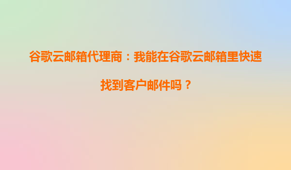 2025-09-29谷歌云郵箱代理商:如何高效管理并快速查找客戶郵件? 一、為什么選擇谷歌云郵箱? 谷歌云郵箱(GoogleWorkspace)作為企業(yè)級郵件服務(wù),以其穩(wěn)定性、安全性和高效性著稱。對于企業(yè)和代理商而...