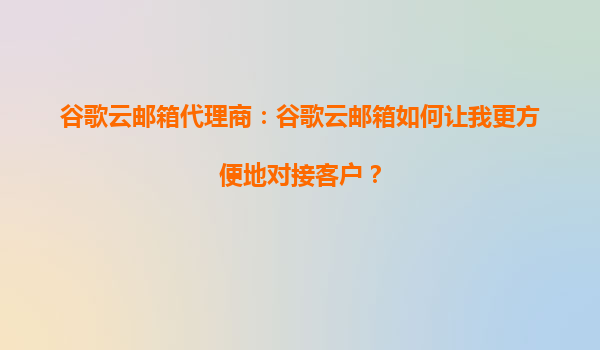 2025-09-29谷歌云郵箱代理商:谷歌云郵箱如何讓我更方便地對接客戶? 在當(dāng)今數(shù)字化商業(yè)環(huán)境中,高效穩(wěn)定的電子郵件系統(tǒng)是企業(yè)與客戶溝通的核心工具之一。谷歌云郵箱(GoogleWorkspace,原GSuite)以其強(qiáng)大的功能和...