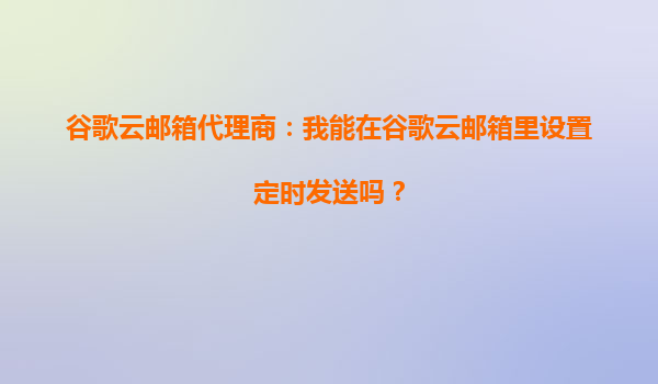 2025-09-28谷歌云郵箱代理商:我能在谷歌云郵箱里設(shè)置定時發(fā)送嗎? 一、谷歌云郵箱的定時發(fā)送功能解析 谷歌云郵箱(Gmail)作為全球領(lǐng)先的電子郵件服務(wù)之一,憑借其強(qiáng)大的功能和穩(wěn)定的性能,深受企業(yè)和個人用戶的...