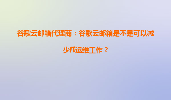 2025-09-28谷歌云郵箱代理商:谷歌云郵箱是不是可以減少IT運(yùn)維工作? 一、谷歌云郵箱的核心優(yōu)勢 谷歌云郵箱(GoogleWorkspace)作為企業(yè)級郵件解決方案,依托谷歌強(qiáng)大的云計算基礎(chǔ)設(shè)施,提供了高可靠性、安...