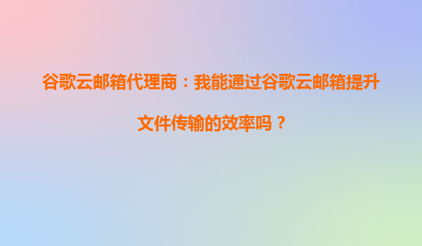2025-09-24谷歌云郵箱代理商:我能通過谷歌云郵箱提升文件傳輸?shù)男蕟幔? 在當今數(shù)字化辦公環(huán)境中,文件傳輸?shù)男手苯佑绊憟F隊協(xié)作和業(yè)務(wù)推進。作為谷歌云郵箱代理商,我們經(jīng)常被客戶詢問:“谷歌云郵箱能否真正提升文件...