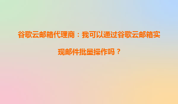 2025-09-23谷歌云郵箱代理商:我可以通過谷歌云郵箱實現(xiàn)郵件批量操作嗎? 引言 在當(dāng)今快節(jié)奏的商業(yè)環(huán)境中,高效的電子郵件管理對于企業(yè)和個人都至關(guān)重要。作為谷歌云郵箱代理商,我們經(jīng)常被客戶詢問一個關(guān)鍵問題:"我可以...