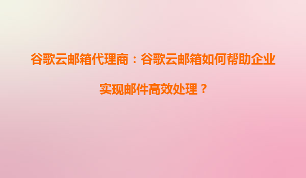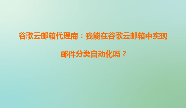 2025-09-23谷歌云郵箱代理商:我能在谷歌云郵箱中實現(xiàn)郵件分類自動化嗎? 一、引言 在當(dāng)今快節(jié)奏的商業(yè)環(huán)境中,高效管理電子郵件已成為企業(yè)和個人的剛需。作為全球領(lǐng)先的云服務(wù)提供商,谷歌云郵箱(GmailforBu...