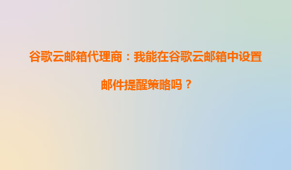 2025-09-23谷歌云郵箱代理商:深度解析郵件提醒策略的設(shè)置與應(yīng)用 一、谷歌云郵箱的核心優(yōu)勢 作為企業(yè)級電子郵件解決方案的標(biāo)桿,谷歌云郵箱(GoogleWorkspace)憑借其高效、安全與智能化的特性,成為全球企業(yè)的首選...