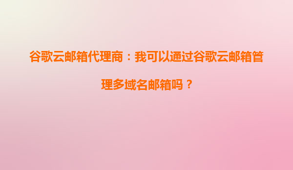 2025-09-23谷歌云郵箱代理商:我可以通過谷歌云郵箱管理多域名郵箱嗎? 在當(dāng)今數(shù)字化商業(yè)環(huán)境中,企業(yè)經(jīng)常需要管理多個域名的郵箱,以滿足不同業(yè)務(wù)需求或品牌推廣。谷歌云郵箱(GoogleWorkspace,原GSuite)提供了一個強(qiáng)大...