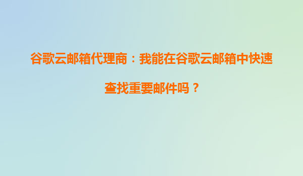 2025-09-23谷歌云郵箱代理商:我能在谷歌云郵箱中快速查找重要郵件嗎? 隨著企業(yè)數(shù)字化轉(zhuǎn)型的加速,高效、安全的企業(yè)郵箱已成為現(xiàn)代商務(wù)溝通不可或缺的工具。作為全球領(lǐng)先的云計算服務(wù)提供商,谷歌云郵箱(GoogleWorkspace,...