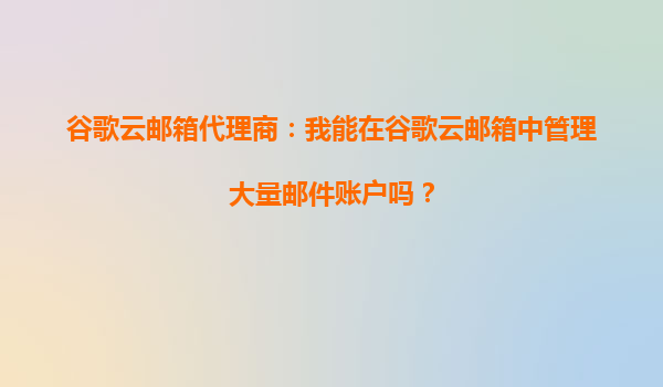 2025-09-22谷歌云郵箱代理商指南:高效管理大量郵件賬戶(hù)的解決方案 一、引言 隨著企業(yè)規(guī)模擴(kuò)大或業(yè)務(wù)需求增長(zhǎng),管理大量郵件賬戶(hù)成為許多組織的剛需。作為谷歌云郵箱代理商,我們經(jīng)常被客戶(hù)詢(xún)問(wèn):"我能在谷歌云郵箱...