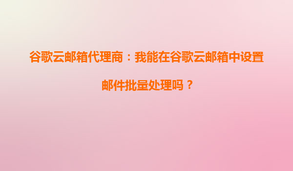 2025-09-22谷歌云郵箱代理商:我能在谷歌云郵箱中設(shè)置郵件批量處理嗎? 一、谷歌云企業(yè)郵箱的批量處理功能概述 作為全球領(lǐng)先的企業(yè)級(jí)郵箱服務(wù),谷歌云郵箱(GoogleWorkspace)通過(guò)其強(qiáng)大的云端架構(gòu)和智能化工...