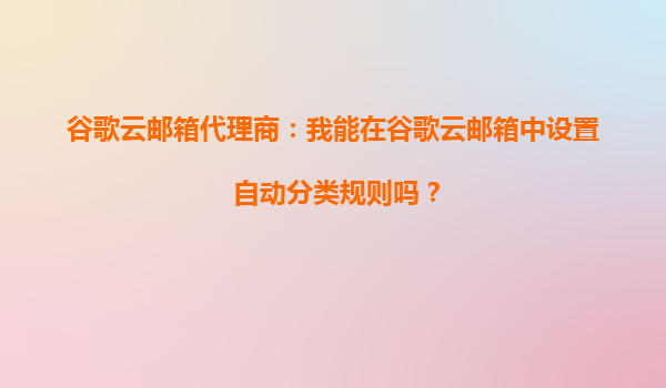 2025-09-22谷歌云郵箱代理商:如何在谷歌云郵箱中設(shè)置自動(dòng)分類(lèi)規(guī)則? 一、谷歌云郵箱的自動(dòng)分類(lèi)功能簡(jiǎn)介 谷歌云郵箱(GmailforBusiness)作為企業(yè)級(jí)郵件解決方案,不僅繼承了個(gè)人版Gmail的智能特性,還通過(guò)強(qiáng)大的云端技...