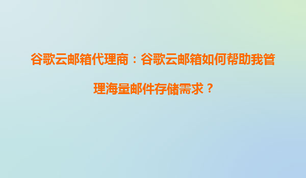 2025-09-18谷歌云郵箱代理商:谷歌云郵箱如何幫助我管理海量郵件存儲(chǔ)需求? 一、海量郵件存儲(chǔ)的挑戰(zhàn)與谷歌云郵箱的解決方案 隨著數(shù)字化辦公的普及,企業(yè)和個(gè)人每天都會(huì)收到大量郵件,而傳統(tǒng)郵箱往往受限于存...