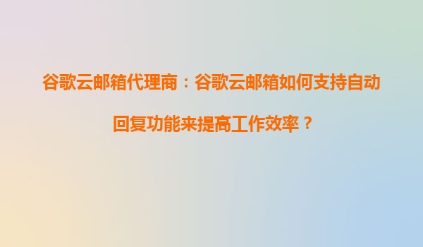 2025-09-18谷歌云郵箱代理商:谷歌云郵箱如何支持自動(dòng)回復(fù)功能來(lái)提高工作效率? 引言 在現(xiàn)代企業(yè)辦公環(huán)境中,電子郵件依然是溝通的核心工具之一。隨著企業(yè)規(guī)模的擴(kuò)大或全球化業(yè)務(wù)的拓展,高效的郵件管理成為提升團(tuán)隊(duì)...