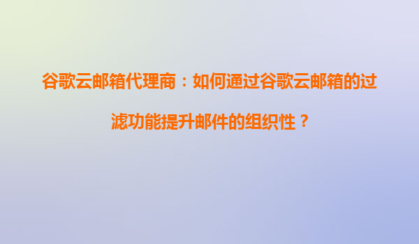 4008-020-360 谷歌云郵箱代理商:如何通過谷歌云郵箱的過濾功能提升郵件的組織性? 一、谷歌云郵箱的優(yōu)勢 谷歌云郵箱(GoogleWorkspace,原GSuite)作為一款高效的企業(yè)級電子郵件服務(wù),憑借其強大的功能和穩(wěn)定的性能,...