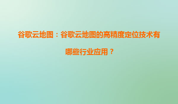 2025-04-14谷歌云地圖的高精度定位技術(shù)及其行業(yè)應(yīng)用 一、谷歌云地圖高精度定位技術(shù)的核心能力 谷歌云地圖的高精度定位技術(shù)基于多源數(shù)據(jù)融合與AI算法優(yōu)化,主要包含以下核心能力: ...