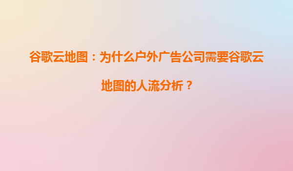 2025-04-14谷歌云地圖:為什么戶外廣告公司需要其人流分析? 一、戶外廣告的痛點與數(shù)據(jù)化轉(zhuǎn)型需求 傳統(tǒng)戶外廣告依賴經(jīng)驗選址,存在三大核心問題: 1.難以量化人流量與目標(biāo)客群匹配度 2...