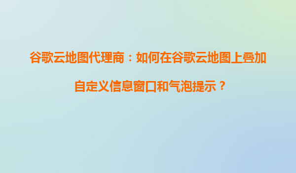 2025-10-28谷歌云地圖代理商:自定義信息窗口與氣泡提示的實用指南 谷歌云地圖作為全球領(lǐng)先的地理空間平臺,為企業(yè)提供了強大的地圖可視化能力。通過疊加自定義信息窗口和氣泡提示,企業(yè)可以更直觀地展示數(shù)據(jù)、提升用戶體驗。...