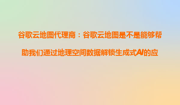 2025-10-26谷歌云地圖代理商:解鎖生成式AI的地理空間數(shù)據(jù)應(yīng)用場(chǎng)景 在數(shù)字化轉(zhuǎn)型的浪潮中,地理空間數(shù)據(jù)與生成式人工智能(AI)的結(jié)合正開(kāi)辟全新的商業(yè)和技術(shù)可能性。作為谷歌云地圖的代理商,我們深刻理解谷歌云平臺(tái)在這...