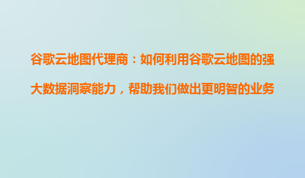 2025-10-26谷歌云地圖代理商:如何利用谷歌云地圖的強大數(shù)據(jù)洞察能力幫助我們做出更明智的業(yè)務決策? 一、谷歌云地圖的核心優(yōu)勢 谷歌云地圖(GoogleMapsPlatform)作為全球領先的地理空間數(shù)據(jù)服務提供商,其核心優(yōu)...