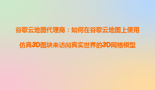 2025-10-26谷歌云地圖代理商:如何在谷歌云地圖上使用仿真3D圖塊來訪問真實世界的3D網(wǎng)格模型? 1.引言 隨著數(shù)字化時代的快速發(fā)展,3D地圖技術在各行各業(yè)中扮演著越來越重要的角色。谷歌云地圖(GoogleMapsPlatform...