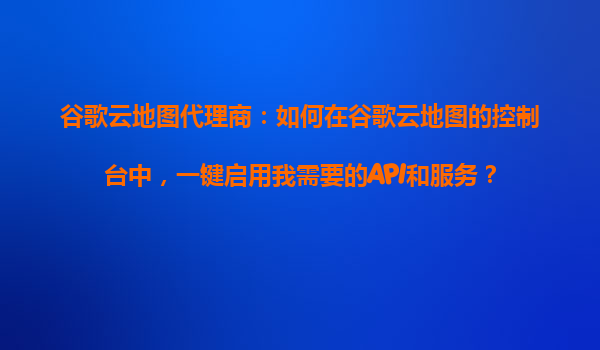 2025-10-26谷歌云地圖代理商:如何在谷歌云地圖控制臺中一鍵啟用所需API和服務 一、谷歌云地圖的核心優(yōu)勢 谷歌云地圖(GoogleMapsPlatform)作為全球領先的地理位置服務平臺,為開發(fā)者、企業(yè)及代理商提供高精...