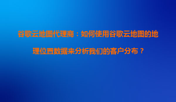 2025-10-20谷歌云地圖代理商:如何使用谷歌云地圖的地理位置數(shù)據(jù)來(lái)分析我們的客戶分布? 引言 在當(dāng)今數(shù)據(jù)驅(qū)動(dòng)的商業(yè)環(huán)境中,了解客戶的地理分布對(duì)企業(yè)制定市場(chǎng)策略至關(guān)重要。谷歌云地圖(GoogleMapsPlatform)提供...