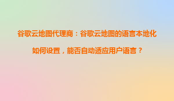 4008-020-360 谷歌云地圖代理商:語(yǔ)言本地化與自動(dòng)適配的卓越體驗(yàn) 一、谷歌云地圖的語(yǔ)言本地化功能 谷歌云地圖作為全球領(lǐng)先的地圖服務(wù)之一,其語(yǔ)言本地化功能為用戶提供了極大的便利。通過(guò)谷歌...