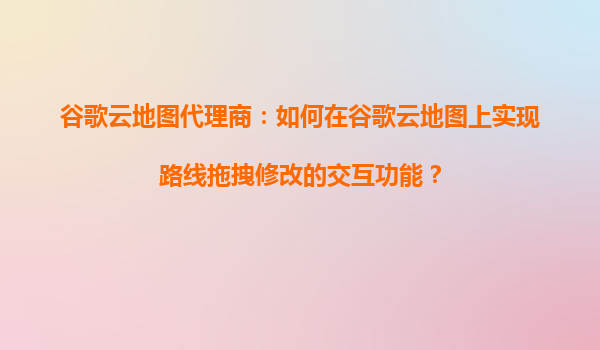 2025-10-20谷歌云地圖代理商:如何在谷歌云地圖上實(shí)現(xiàn)路線拖拽修改的交互功能? 一、引言 隨著數(shù)字化和智能化的發(fā)展,地圖服務(wù)已成為許多企業(yè)和開(kāi)發(fā)者不可或缺的工具。谷歌云地圖(GoogleMapsPlatform)作為全球領(lǐng)...