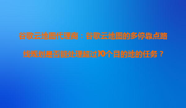 2025-10-18谷歌云地圖代理商解析:谷歌云地圖的多??奎c路線規(guī)劃能否處理超過10個目的地的任務(wù)? 引言:多??奎c規(guī)劃的挑戰(zhàn)與需求 在物流配送、旅行規(guī)劃或日常巡檢等場景...