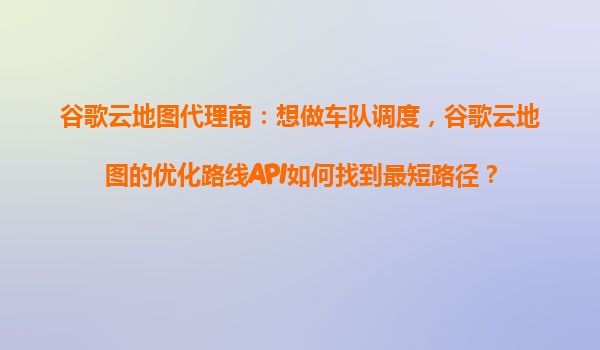 2025-10-17谷歌云地圖優(yōu)化路線API:車隊調(diào)度的智能導(dǎo)航利器 在物流運輸、共享出行、緊急救援等依賴車隊調(diào)度的行業(yè)中,如何高效規(guī)劃車輛路徑是降低成本、提升服務(wù)質(zhì)量的關(guān)鍵。谷歌云地圖的優(yōu)化路線API(RoutesAPI)為企業(yè)提供...