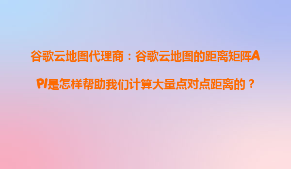 2025-10-18谷歌云地圖代理商:谷歌云地圖的距離矩陣API是怎樣幫助我們計算大量點對點距離的? 一、距離矩陣API的核心功能與應(yīng)用場景 谷歌云地圖的距離矩陣API是一種高效的...
