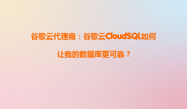 谷歌云代理商:谷歌云CloudSQL如何讓我的數(shù)據(jù)庫更可靠?