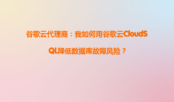 谷歌云代理商:我如何用谷歌云Cloud SQL降低數(shù)據(jù)庫故障風(fēng)險?