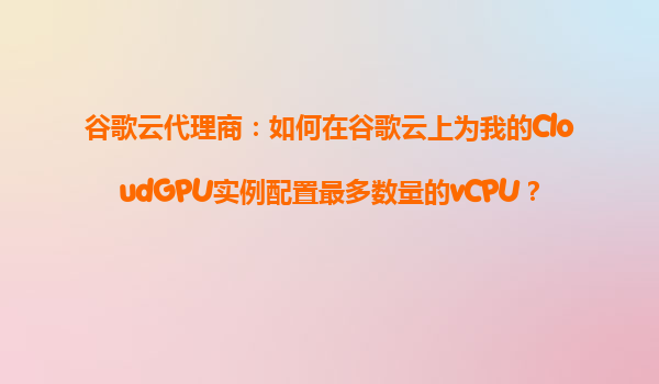 2025-10-23谷歌云代理商:如何在谷歌云上為我的CloudGPU實例配置最多數(shù)量的vCPU? 引言 在當今數(shù)據(jù)驅(qū)動的世界中,云計算已成為企業(yè)和技術(shù)團隊不可或缺的一部分。谷歌云(GoogleCloudPlatform,GCP)以其高性能、靈...