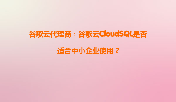 2025-10-10谷歌云代理商:谷歌云CloudSQL是否適合中小企業(yè)使用? 一、CloudSQL的核心優(yōu)勢 谷歌云CloudSQL作為全托管關(guān)系型數(shù)據(jù)庫服務,為中小企業(yè)提供了以下核心價值: 零運維成本...